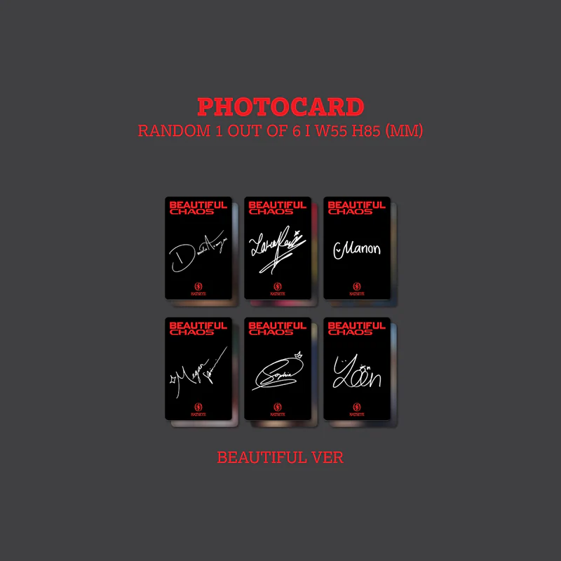 Photo card set (6 photo cards in total: double-sided with 12 images - 6 Beautiful vinyl version images on one side & 6 Chaotic vinyl version images on the other side)